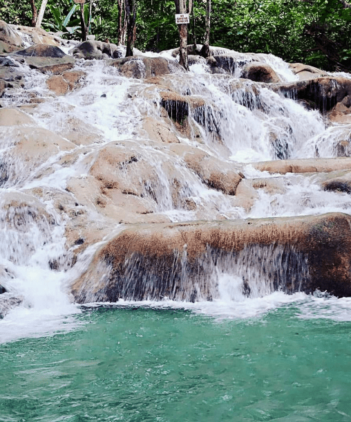 Climbing Dunn’s River Falls in Ocho Rios, Jamaica is one of the island’s most memorable adventures. This spectacular 600-foot cascading waterfall flows over natural limestone terraces surrounded by lush tropical greenery before meeting the Caribbean Sea.