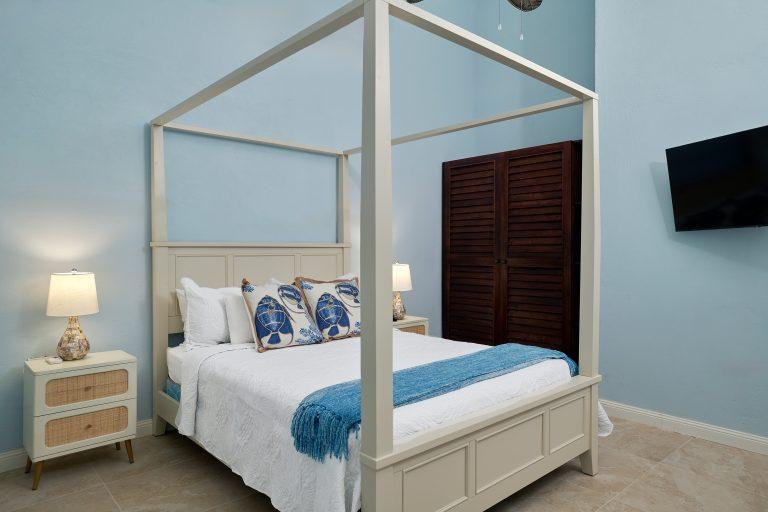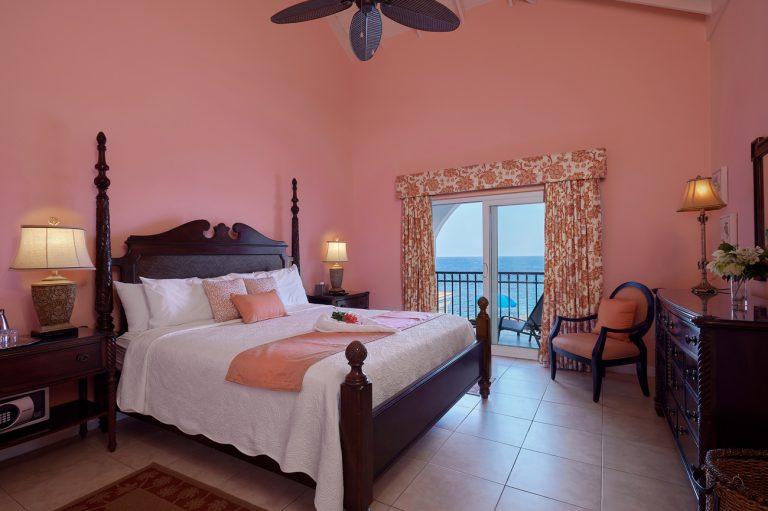 Bedroom 7 - Bird of Paradise Bedroom Upstairs, Sea View, Pool View, Private Balcony, King-size Bed, Air-Conditioned, Ceiling Fan, Flat Screen TV & Cable, En-suite Bathroom