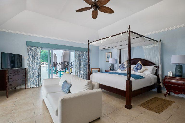 Bedroom 8 - Poinciana Bedroom Upstairs, Sea View, Pool View, Private Balcony, King-size Bed, Air-Conditioned, Ceiling Fan, Flat Screen TV & Cable, En-suite Bathroom