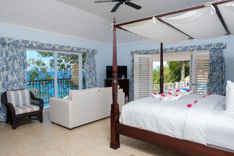Bedroom 10 - Morning Glory Bedroom Upstairs, Sea View, Pool View, Private Balcony, King-size Bed, Air-Conditioned, Ceiling Fan, Flat Screen TV & Cable, En-suite Bathroom