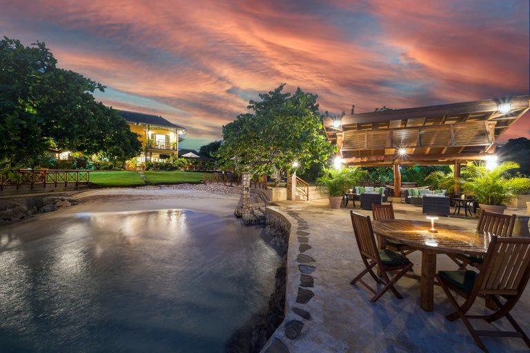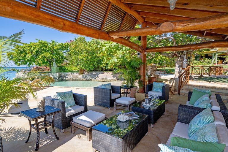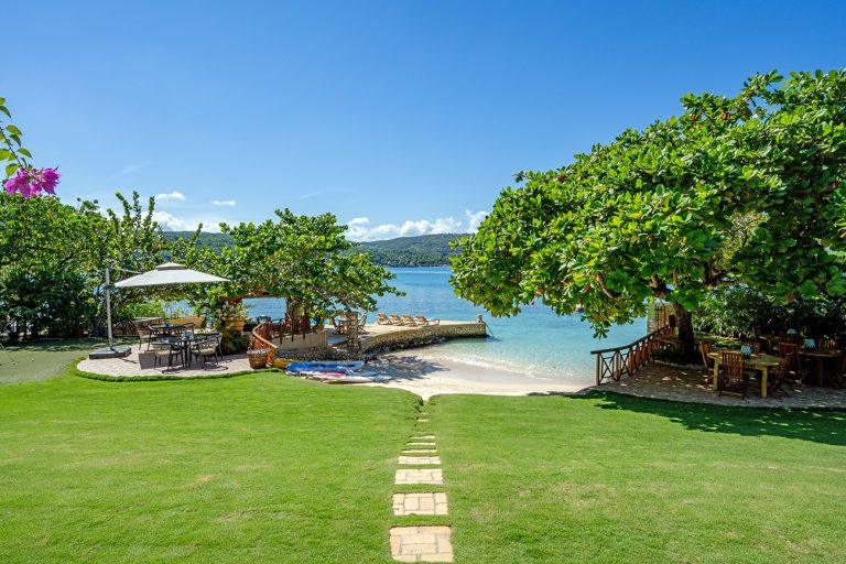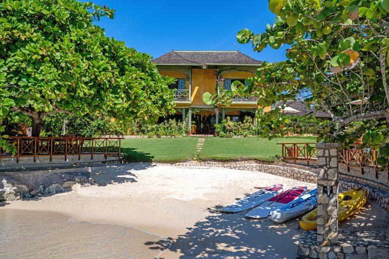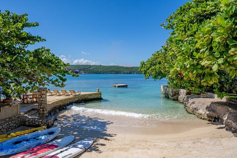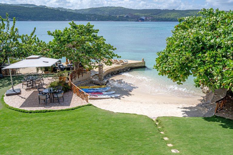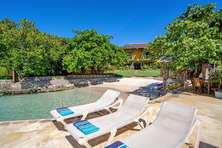 Keela Wee Villa is a beautiful 6-bedroom beachfront villa in Discovery Bay near Ocho Rios with a secluded white sand beach and full staff including chef and butler. The villa features a private pool and Jacuzzi, tennis court, lush tropical gardens and elegant indoor-outdoor living overlooking its private coral cove.