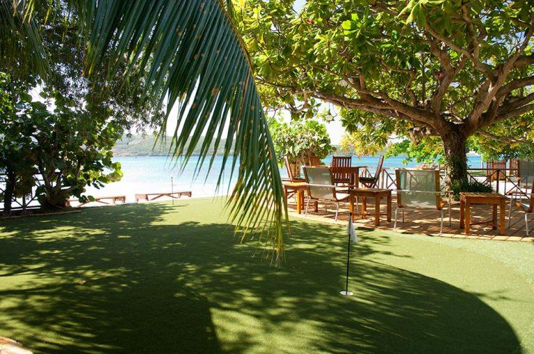 Colourful tropical grounds & sea views bright,