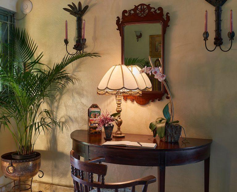 Classic interiors with tropical art,