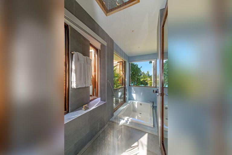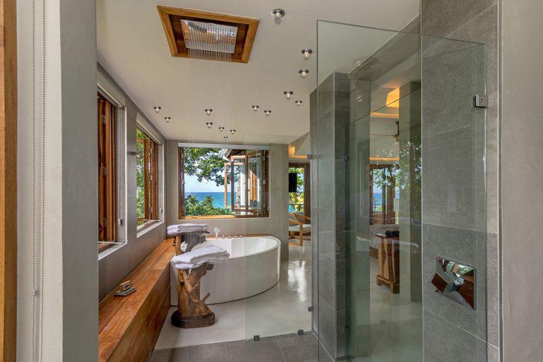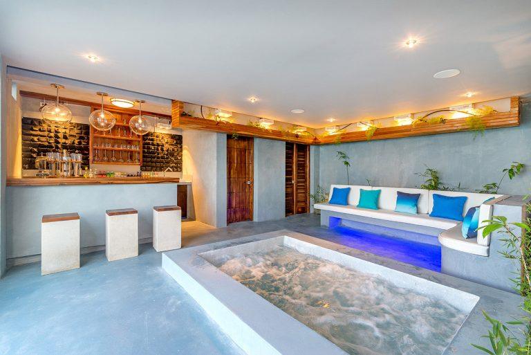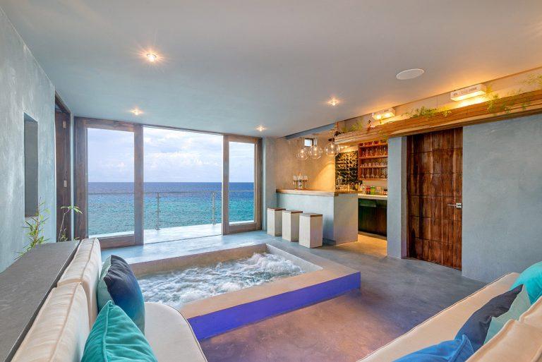 • Luxurious spa cave nestled in the cliffside of Villa 2 with dramatic ocean views from hot tub, deep-cushioned lounge & private bar