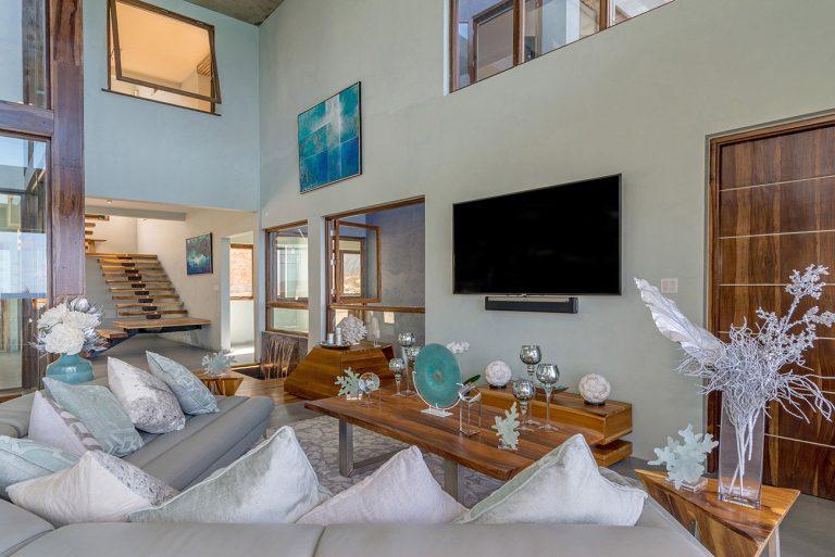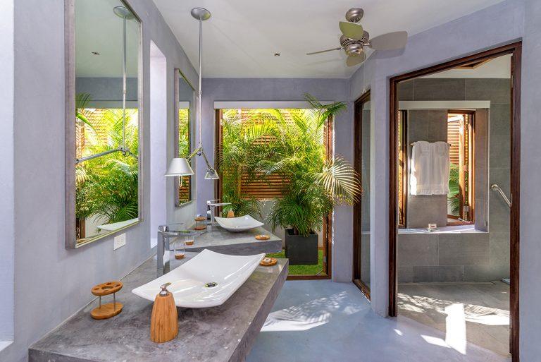 • Distinctive modern villa design featuring local teak, driftwood accents & serene water features