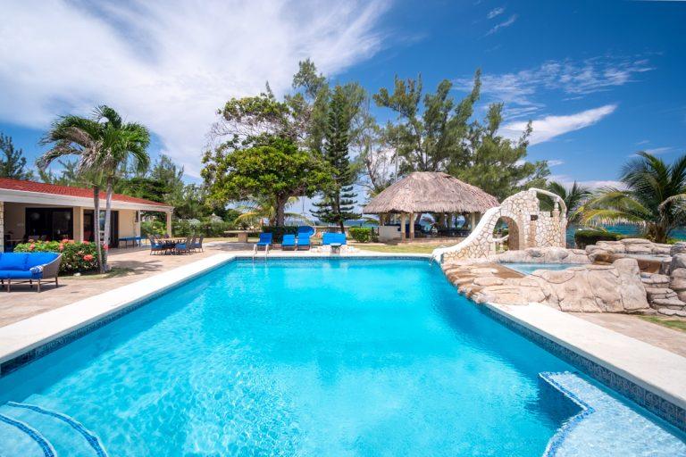 Seven Seas Villa is a charming beachfront villa in Ocho Rios, Jamaica set on three acres of lush tropical grounds along the calm waters of Mammee Bay. With a private pool, swimmable beach, ocean-view bedrooms and attentive staff, the villa offers relaxed Caribbean living perfect for families and friends.