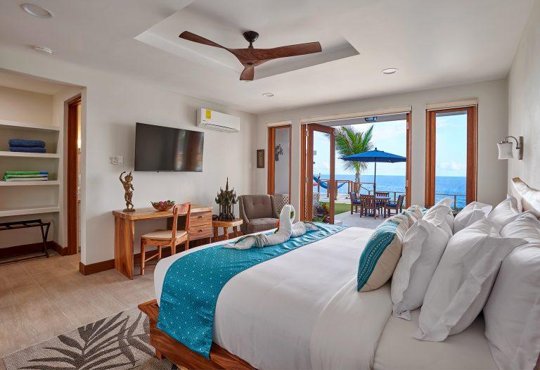 Siam Bedroom Ground Level, Sea View, French Doors Leading out to Terrace, King-size Bed, Walk-in Closet, Air-Conditioned, Ceiling Fan, Flat Screen TV & Cable, En-suite Bathroom